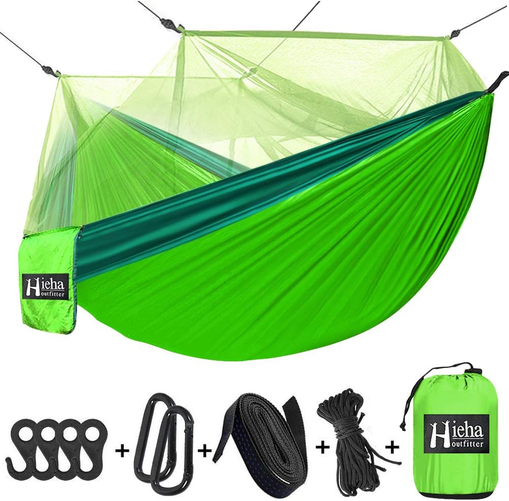 5. Hieha Camping Hammock with Mosquito Net – Carabiners for Outdoor Backpacking Travel