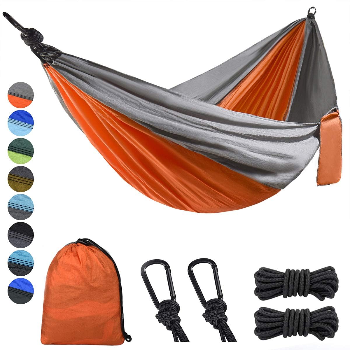 - Come with everything you need for quick hanging: double camping hammock, steel carabiners and 3 meters tree ropes. Less than 3 minutes for setting up the hammock between two trees or the proper objects and adjust your hammock to the perfect height and comfort level. Great for camping, backpacking, beach, backyard or just relaxing